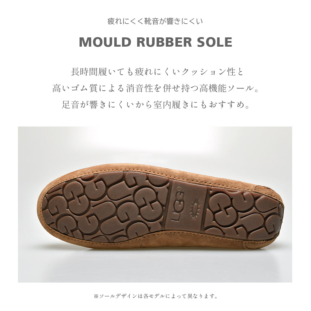 UGG®の定番人気モカシンDakota(ダコタ)。シンプルなスリッポンに革ひものリボンでアクセントをプラスしました。ふわふわの天然ウールライニングと軽量でしなやかなモールドラバーアウトソールで仕立てた一足は屋内外兼用で着用いただけます。